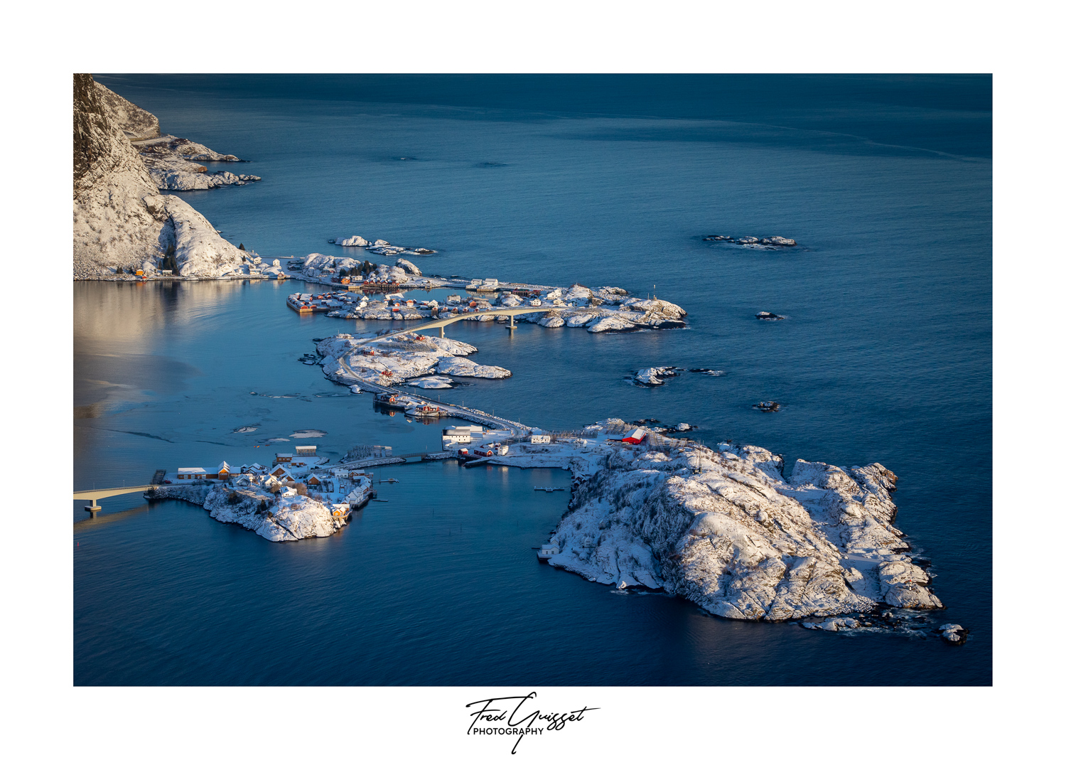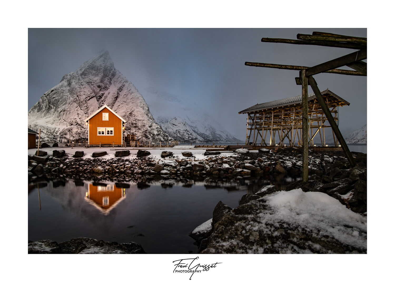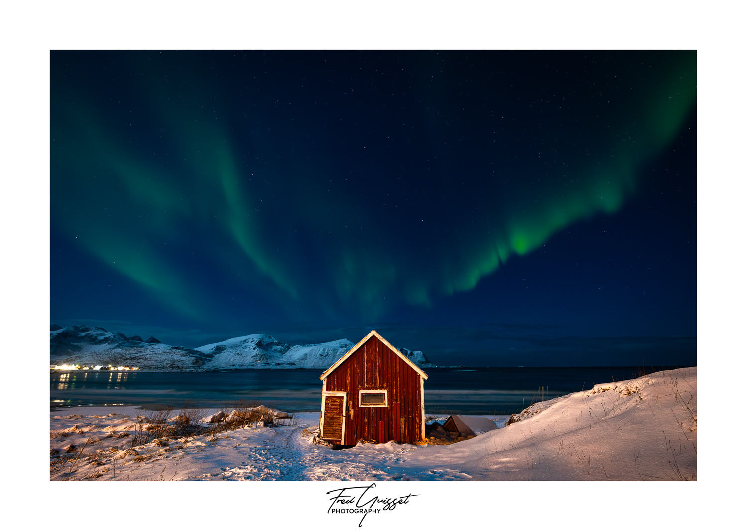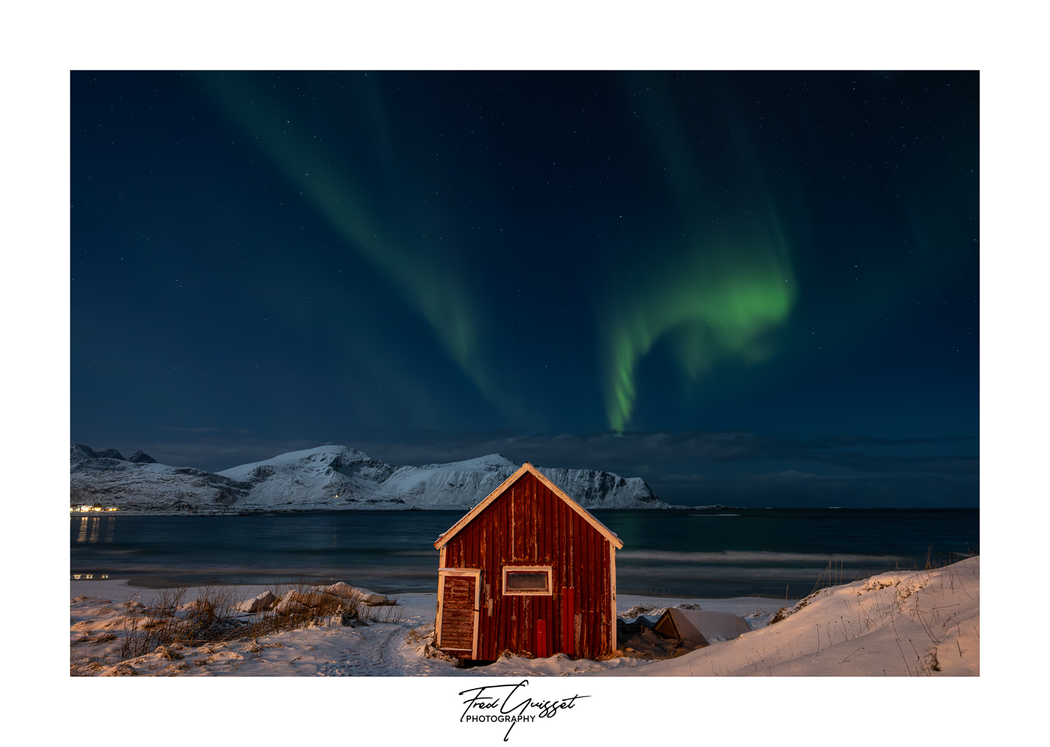 Vous serez transporté à travers des lieux emblématiques tels que Reine, Nusfjord ou encore les plages d’Haukland et Uttakleiv. Nos images saisissent aussi des instants plus intimes : les cabanes rouges de pêcheurs, les reflets parfaits sur les fjords calmes, ou encore les éclats dorés d’un soleil rasant à l’horizon.