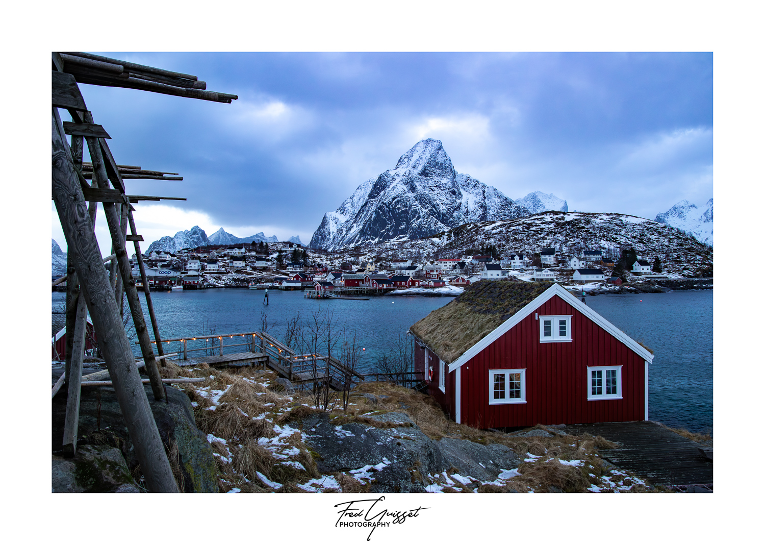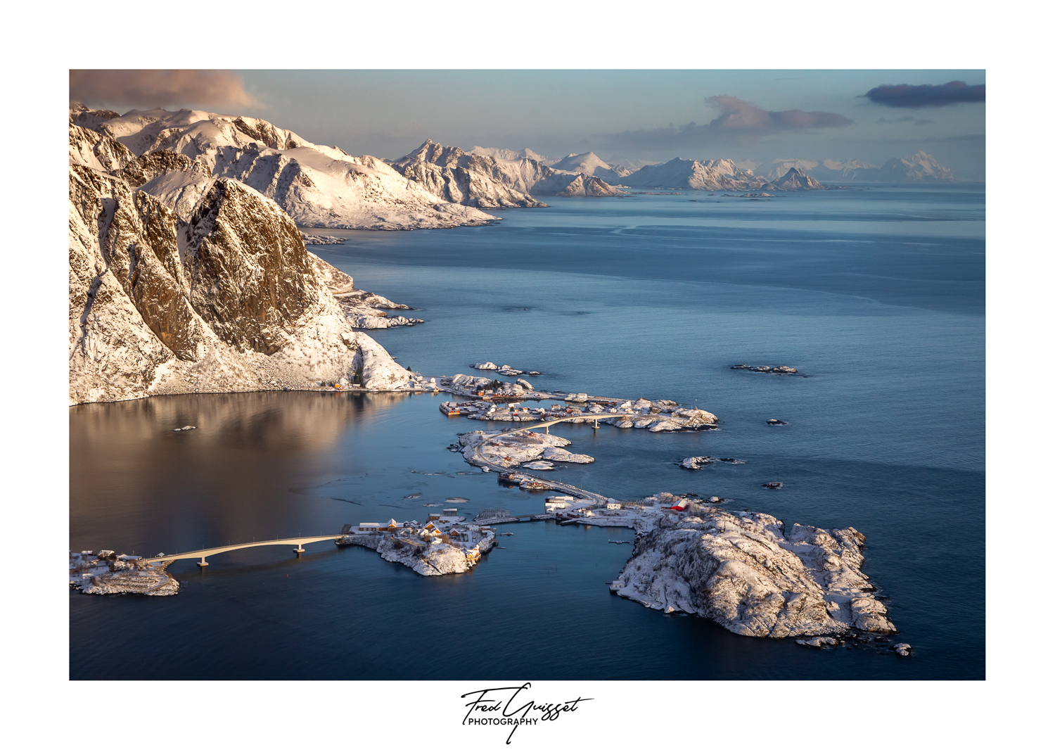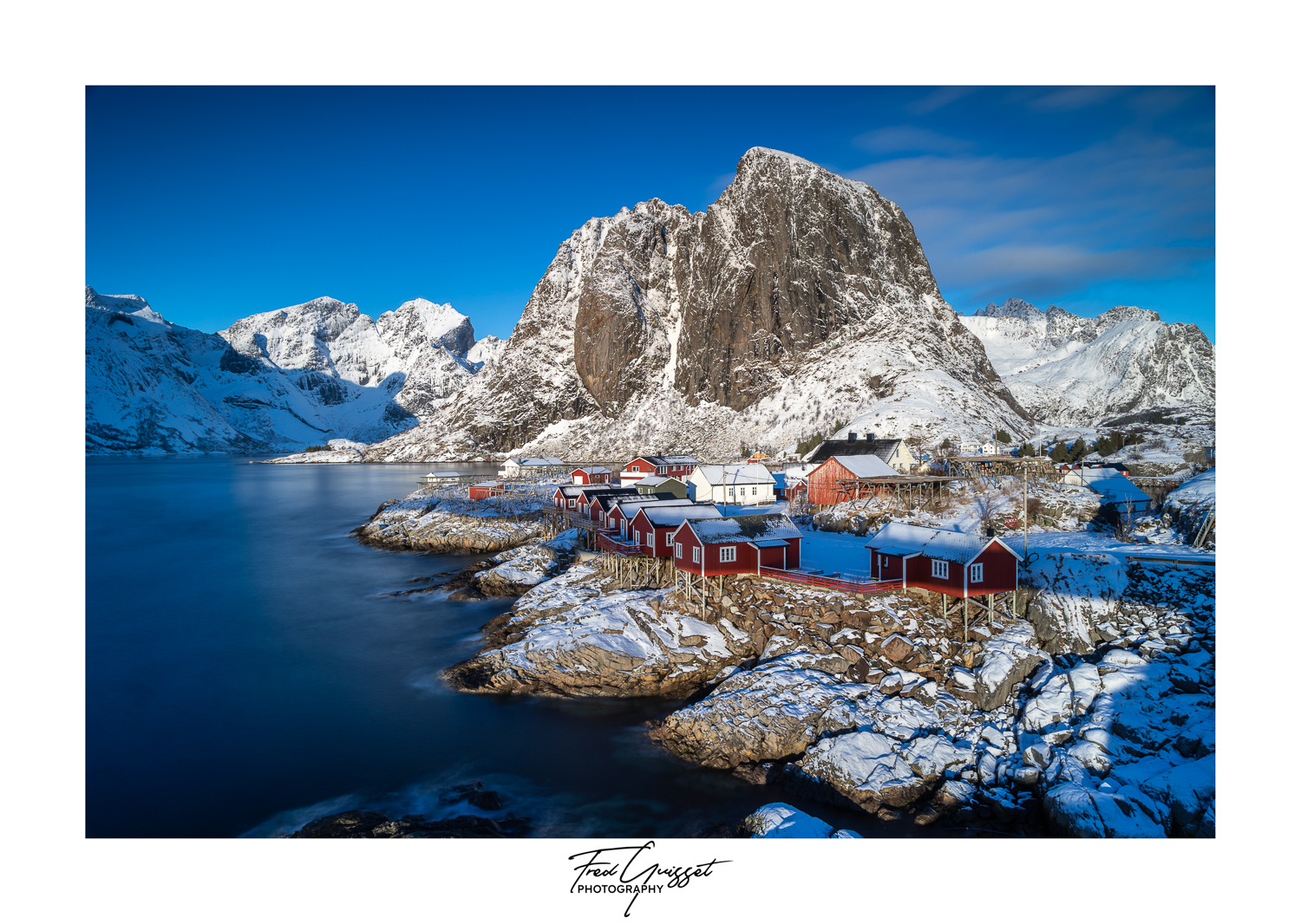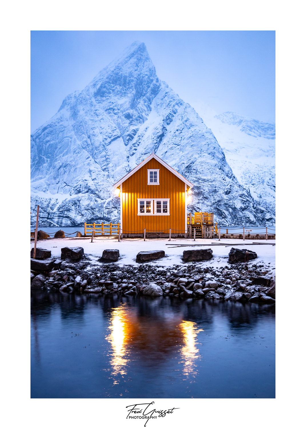 Vous serez transporté à travers des lieux emblématiques tels que Reine, Nusfjord ou encore les plages d’Haukland et Uttakleiv. Nos images saisissent aussi des instants plus intimes : les cabanes rouges de pêcheurs, les reflets parfaits sur les fjords calmes, ou encore les éclats dorés d’un soleil rasant à l’horizon.