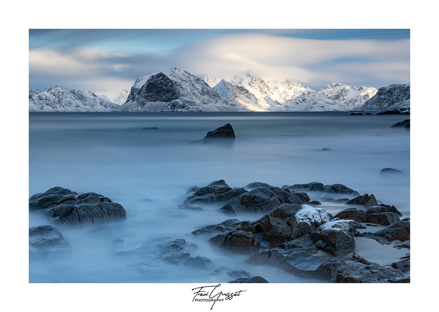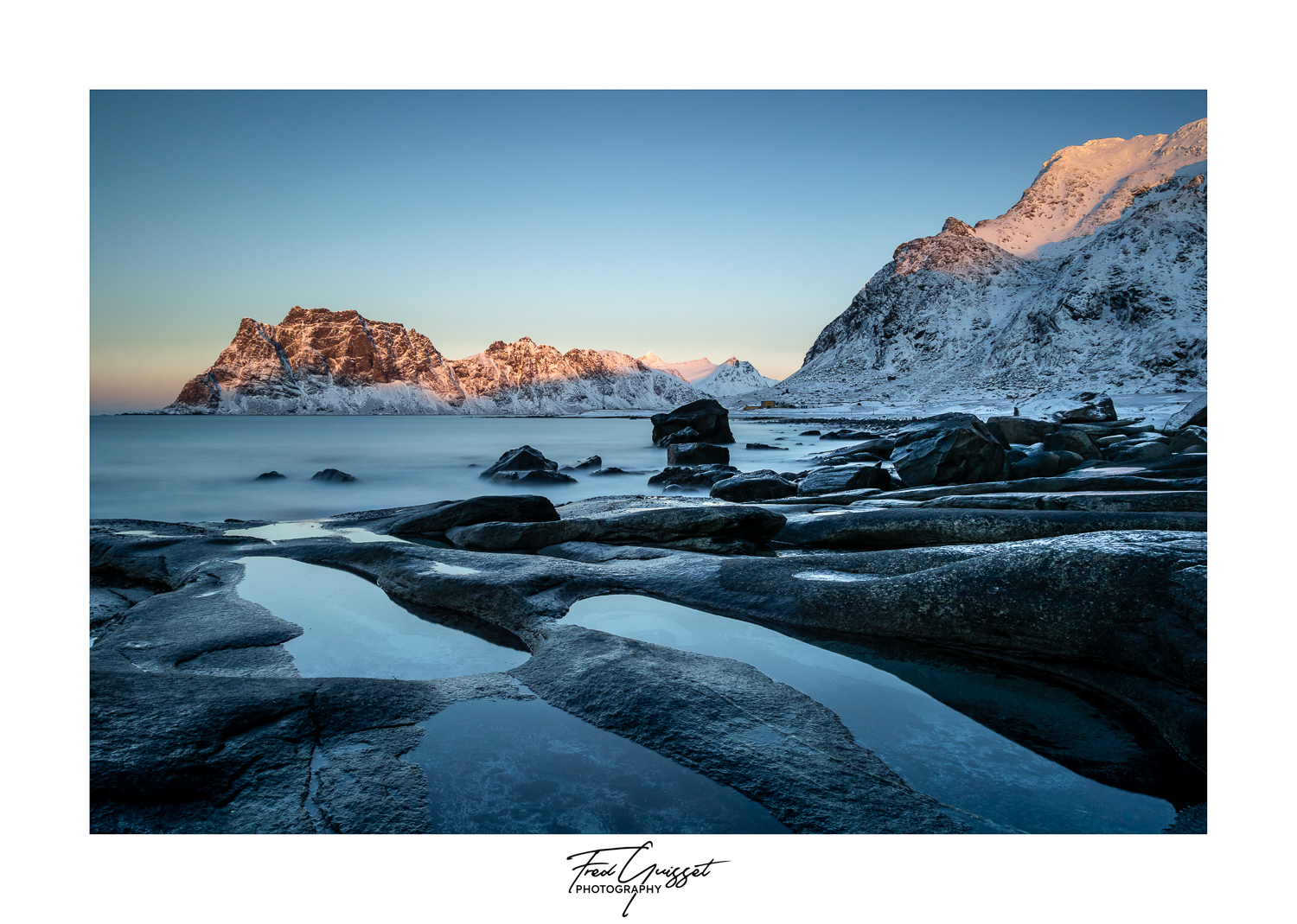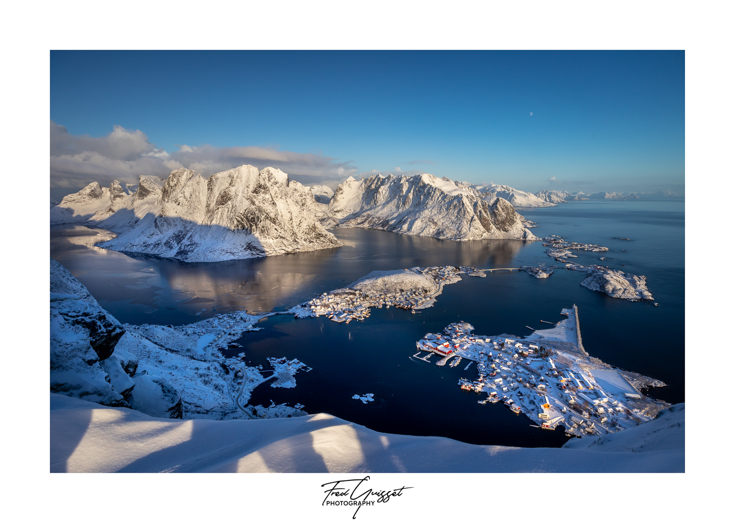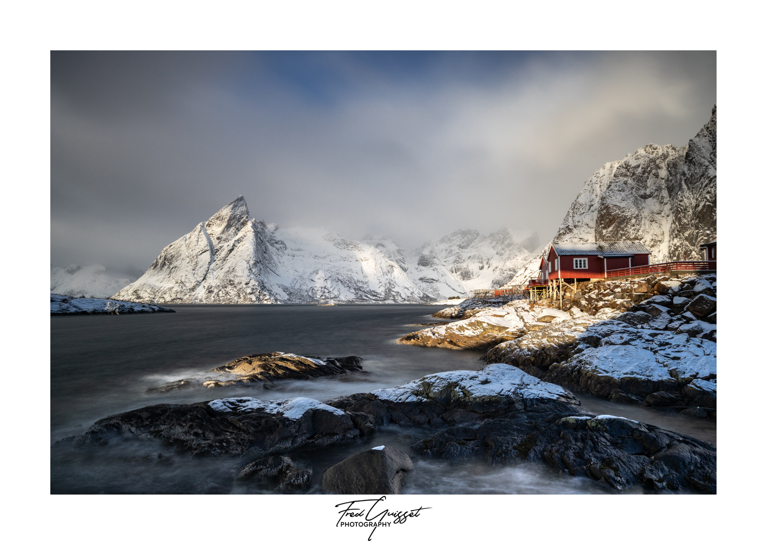 Vous serez transporté à travers des lieux emblématiques tels que Reine, Nusfjord ou encore les plages d’Haukland et Uttakleiv. Nos images saisissent aussi des instants plus intimes : les cabanes rouges de pêcheurs, les reflets parfaits sur les fjords calmes, ou encore les éclats dorés d’un soleil rasant à l’horizon.